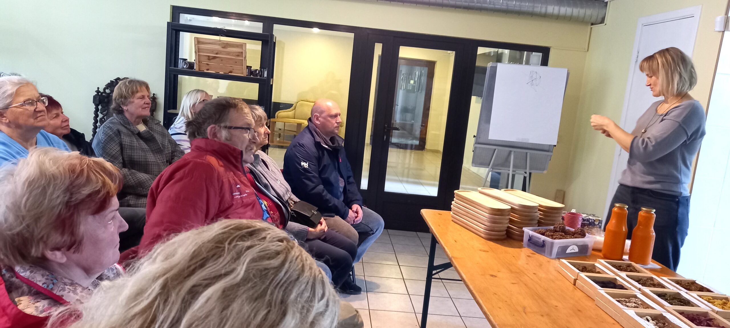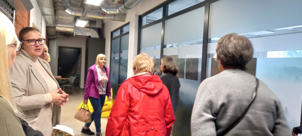 Apmeklējām Cēsu Radošo un digitālo kvartālu “Rainis”. Centrs kalpo biznesa attīstībai, tā mērķis ir attīstīt uzņēmējdarbībai nepieciešamo publisko infrastruktūru, veicināt inovācijas. Kopstrādes iespējas jaunu, komerciālu produktu un pakalpojumu veicināšanai dažādu nozaru uzņēmumos. Anete Rudmieze, uzņēmējdarbības atbalsta un inovāciju attīstības vadītāja, pastāstīja un parādīja uzņēmēju darba telpas. Visinteresantākais brauciena dalībniekiem likās apmeklēt darba telpu, kurā atrodas Sēņu laboratorija Spora – funkcionālo sēņu uzņēmums. Telpā atrodas siltumnīca, kurā tiek audzēta sēne Ežu dižadatene, laboratorijā tiek zinātniski pētīts tās bioloģiski aktīvo vielu saturs un labvēlīgā ietekme uz cilvēku veselību.