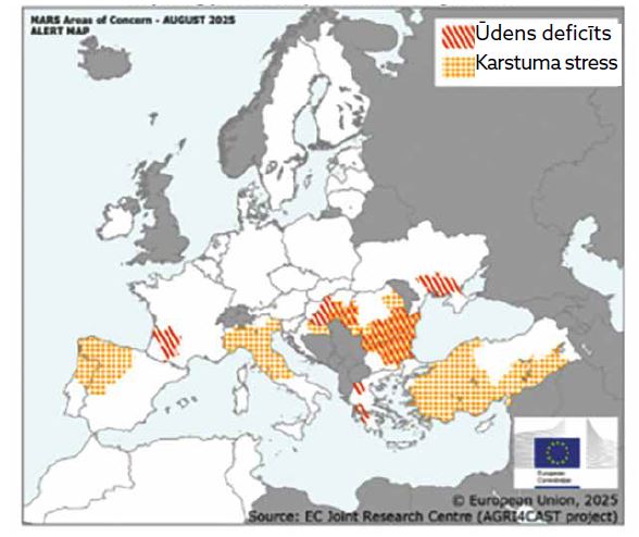 Pastāvīgais sausums Rumānijā, Bulgārijā, Grieķijā, Ukrainas dienvidos un Turcijā izraisīja neatgriezeniskus ražas zaudējumus. Ungārijā un Horvātijas austrumos karstums un nokrišņu deficīts vēl vairāk samazināja ražas cerības.