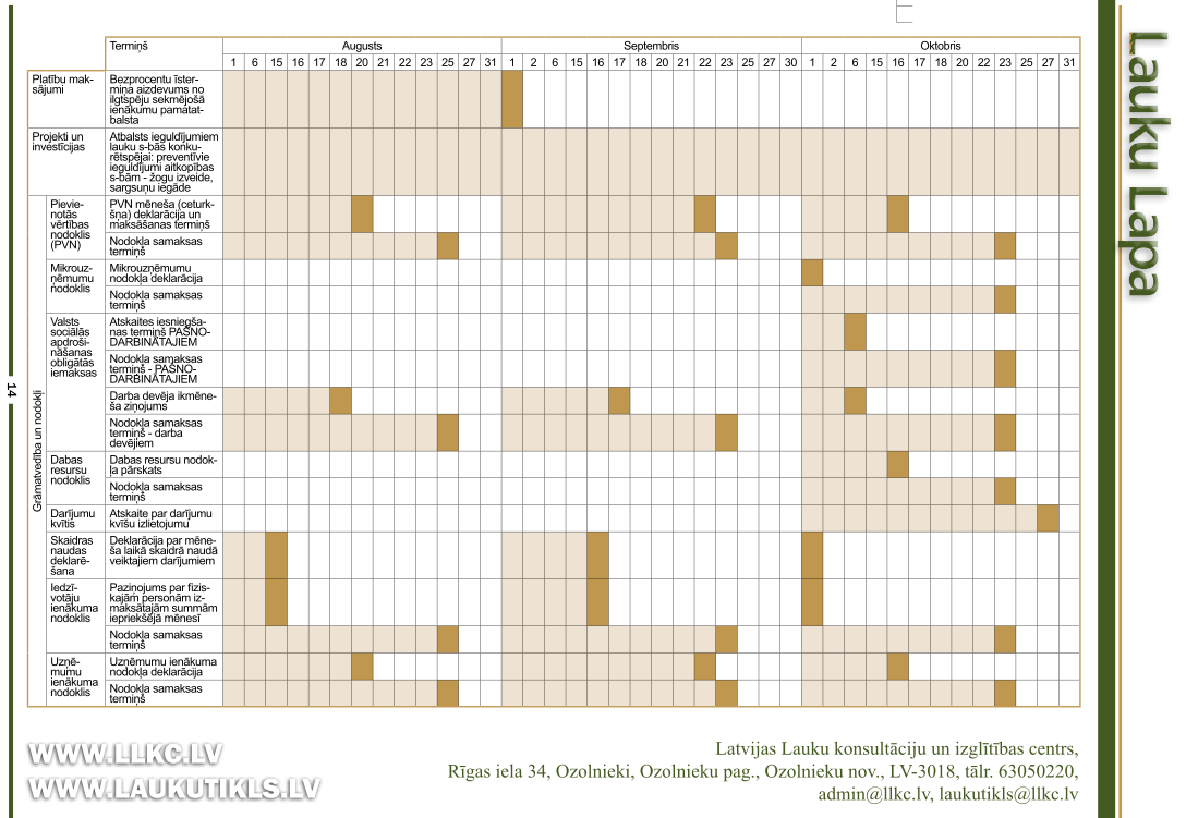 Kā vienmēr, tiek publicēts kalendārs ar svarīgākajiem datumiem, kurus lauku uzņēmējs nedrīkst aizmirst nākamajā mēnesī.