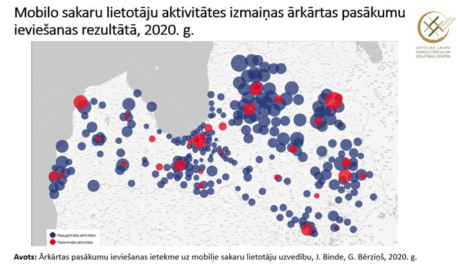 SIA “Latvijas Mobilais Telefons” 2020. gadā veikts pētījums parādīja, ka lauku telpai reģionos Covid-19 krīzē bija ļoti liela nozīme – tā deva patvērumu pilsētu iedzīvotājiem – tie strauji izpirka īpašumus un pārcēlās uz dzīvi lauku reģionos. Līdz ar pilsētas iedzīvotāju ienākšanu lauku telpā radās pieprasījums pēc augstākas kvalitātes pakalpojumu pieejamības, nodrošinot apstākļus kvalitatīva attālinātā darba iespējām (kas šodien jau ir absolūti ierasti).