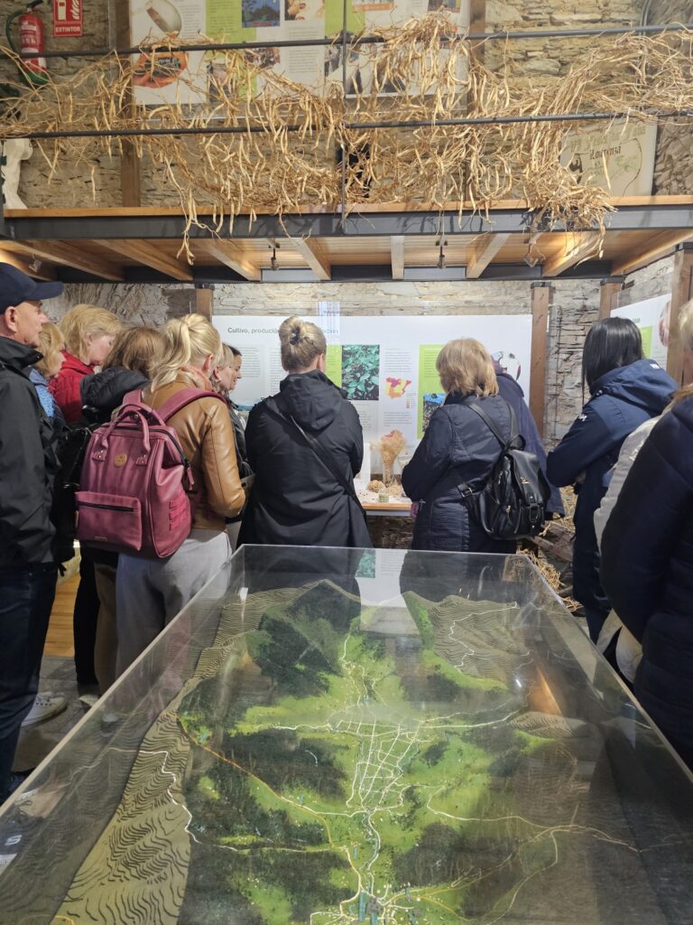O ENREDO DO ABELLEIRO – biškopības darbnīca, biškopības muzejs un medus apstrāde. Notiek lauksaimniecības produkta virzīšana tirgū, interneta tirdzniecības un virtuālas saimniecības apskates pakalpojuma attīstīšana, izveidots virtuālais strops. Šeit iekārtots ģimenes muzejs, kuru izveidoja saimnieces tētis. Šobrīd viņam ir 90 gadi, bet vēl joprojām viņš darbojas ar 200 bišu stropiem. Muzeju tētis nosaucis par dzīvo medus muzeju. Te ir 7 dravas un darbnīca, kurā ir perfekta kārtība un kurā tētis veic visus dravai nepieciešamos darbus. Darbnīcā var redzēt tēta darba filozofiju. Viņš ļoti respektē visu, kas ir saistīts ar bitēm. Bitēm tiek atstāts 3 reizes vairāk medus kā parasti, jo tiek domāts pirmkārt par bitēm. Bišu muzejā ir atsevišķas zāles katram biškopības un medus ieguves procesam. Kad ierodas apmeklētāji, medus iegūšanas process tiek parādīts no tēta skata punkta, kas ietver romantismu, tas ir īpašs notikums – redzēt, kā strādā bites. Bet tas ir slikti maciņam, jo nopelnīt nevar daudz, šeit nav nekas, kas ienestu daudz naudas, bet ir kaislība strādāt. Šeit ir ekstrakcijas zāle, medus atpūtas zāle, pildīšanas telpa. Zāles savstarpēji saistītas ar caurulēm pa kurām medus tek paštecē. Ir uztaisīts stikla strops, kur var redzēt, kā bites strādā, Ja paveicas, var ieraudzīt arī māti, kura ir ar baltu punktiņu, viņa vienmēr būs augšpusē. Ir redzami arī tradicionālie vecie stropi, korķa strops, stikla strops. Notiek nišas produktu pieprasījuma apzināšana, sortimenta veidošana un realizācijas iespējas (https://ericamel.gal/). Kooperatīvā ir 250 biedri. Šeit viss medus ir no Galisijas apgabala. Bišu saimes ir no dažādām saimniecībām, dažām pat ir 500 saimes. Šeit gadā apstrādā 90 tonnas medus. Tas tiek tirgots lielajos tirdzniecības tīklos Kampo un arī citos. Medus tiek piegādāts spaiņos, katram ir etiķete “Galisijas medus”. Uz katras etiķetes ir numurs, no kuras saimniecības medus ir iegūts. Šeit medus tiek nosvērts un paņemti paraugi, lai pārbaudītu pesticīdu, antibiotiku, svina un smago metālu klātbūtni. Medum nosaka arī mitrumu. Tas nedrīkst pārsniegt 18,5%, citur Spānijā var būt 20%. Šeit nosaka arī HMF skaitli, tas parāda, vai medus ir sildīts vai nē, un vai tas noticis pārāk augstā temperatūrā. Tas norāda arī medus vecumu. Ja medus medum ir 5 gadi, tad šis skaitlis ir augstāks. Kamēr nav sagaidīti analīžu rezultāti, medus tiek uzglabāts. Pamatā šeit ir monoflorais medus, tas var būt eikaliptu, kastaņu vai viršu. Ir arī meža medus. Kad analīzes ir saņemtas, tad medus dodas uz sildīšanas tvertnēm ūdens peldē 30 ℃, tajās mucas tiek apgāztas un iztecinātas vienas dienas laikā. Sildīšanas tvertnes ietilpība ir 2 tonnas. Kad medus kļuvis šķidrs, to pārvieto uz tvertnēm un tās nonāk fasēšanas telpā, tiek safasēts 250 ml, 400 ml un 1 litra traukos. Spaiņus un tvertnes mazgā mazgāšanas telpā. Monoflorā medus vairumcena ir 5,5 eiro, šobrīd tā ir lielākā cena, kuru piedāvā kooperatīvs. No kaitēkļiem biškopībā liela problēma ir Āzijas lapsene, kas nokož bites, tāpēc pielieto elektriskos sietus, ar ko to apkarot. Kooperatīva vadība mēģina atrast zelta vidusceļu, lai biedri ir apmierināti un kooperatīvs var konkurēt ar kvalitāti, bet ne kvantitāti.
