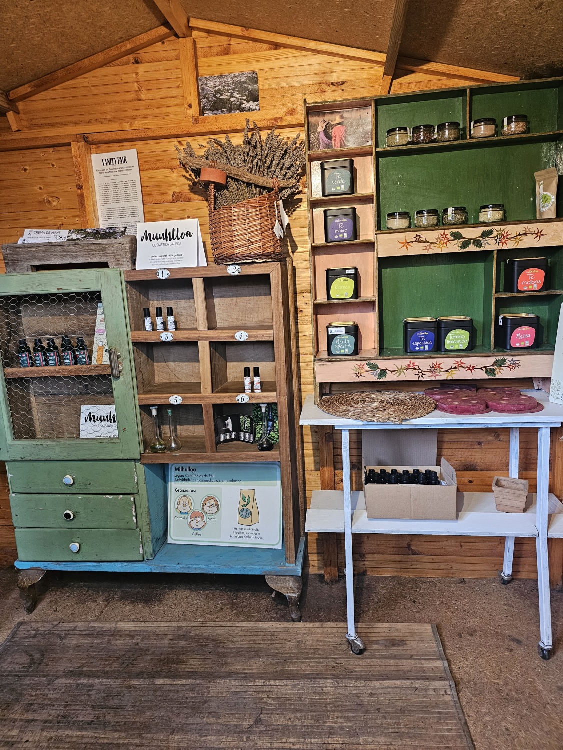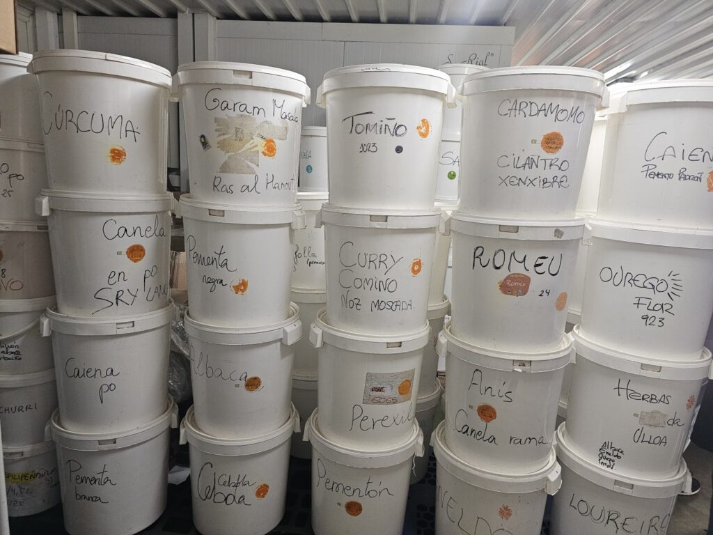 Ārstniecības augu audzēšanā tiek izmantota saimniecības zeme. Kopējā platība ir 10 hektāri, bet visu viņas nevar paspēt apstrādāt, jo strādā divatā. Cik var paspēt, tik izdara. Saimniece ar ārstniecības augiem nodarbojas jau vairāk nekā 25 gadus. Agrāk viņa ārstniecības augus audzēja un atdeva pārstrādāt citiem uzņēmumiem, bet tas bija par maz, lai varētu izdzīvot. Bet tad izlēma, kad spēj arī pati pārstrādāt. Dzīvojamā mājā atrodas arī neliela ražotne. Vasarā tiek gatavotas tējas un garšvielu maisījumi. Viss process notiek secīgi – iestāda augus, atkarībā no gadalaikiem tos novāc un žāvē. Nesen tika iegādāta arī jaudīga žāvētava. Lai to efektīvi varētu izmantot, tiek žāvētas arī kāļu, rāceņu lapas, no kurām gatavo pulverus, kurus ir ērti paņemt līdzi braucienos, ceļojumos utt. un pagatavot uz vietas. Papildus saimniecībā veic meistarklases, organizē seminārus, uzņem tūristus. Saimniecība piedalās arī Eiropas Savienības projektā par ekotūrismu, dalās ar savu pieredzi. Pateicoties visām aktivitātēm, ir vieglāk izdzīvot un strādāt. Vietā, kur atrodas ražotne, agrāk bija govju kūts. Blakus saimniecībai atrodas Camino ceļš, tas ir Francijas- Santjago ceļš. Tas rada sarežģījumus, ko šeit var darīt un kā saimniecību iekārtot. Ražotne sastāv no vairākām telpām. Pirmajā telpā ārstniecības augi tiek ievesti. Saimniece ir ļoti priecīga, jo šogad sadarbībā ar kādu institūtu ir izveidotas mazgāšanas iekārtas, ar ko apstrādāt augus. Tas ir liels atvieglojums, jo agrāk visus augus mazgāja ar rokām. Līdz ar to ir iespēja palielināt apjomus un attīstīt ražošanu. Nākamā ir žāvēšanas telpa. Augi tiek žāvēti 39 grādos. Žāvēšanas sieti ir izgatavoti no zvejnieku tīkliem un rāmja. Pirms 5 gadiem saimniece pati iemācījās tos pagatavot un pievienot tīklu rāmim. Sākotnēji saimniecībā bija maz finanšu līdzekļu, līdz ar to visu darīja paši. Vēl joprojām tiek domāts, kā optimizēt un samazināt izmaksas, tāpēc žāvēšanai izmanto āra temperatūru un domā arī par saules paneļu uzstādīšanu. Kad augi ir izžāvēti, tos saliek spaiņos. Saimniece saka, ka viņiem ir mikro industrija, viņu mazā ražotne. Tālāk no spaiņiem augi ar rokām tiek safasēti mazos maisiņos, garšvielas tiek liktas burciņās. Santjago ceļa malā, tieši blakus saimniecībai, ir izveidots neliels veikaliņš, kur garām ejošie svētceļnieki var iegādāties saimniecībā saražoto produkciju. Veikaliņā strādā praktikanti un studenti. Produkcija tiek tirgota arī internetā, ir mājaslapa. Turklāt arī Madridē ir veikaliņš, kur var iegādāties šo produkciju. Sadarbībā ar draudzeni, kura audzē govis, tiek veidota ķermeņa kosmētika, izmantojot dabīgo pienu. Ķermeņa losjons ir pirmais produkts Spānijā, kurā tiek izmantots dabīgais piens. Saimniecībā tiek gatavoti arī garšvielu maisījumi ar ķiplokiem, citronu rozmarīnu. Viens no nosaukumiem ir UJAS, tas ir netālu esošās upes vārds. Papildus ienākumu saimniecībā dod arī cepumi, kuriem nosaukumi ir doti – krustmāte, vecmamma, krusttēvs, tā godinot senču piemiņu.