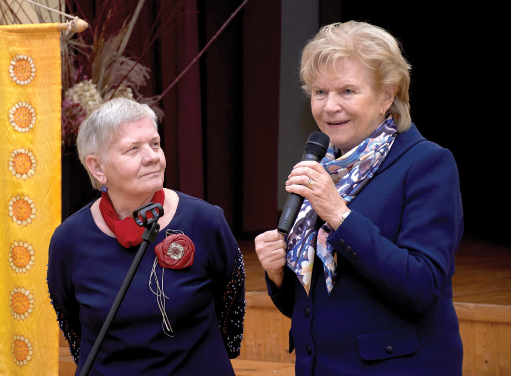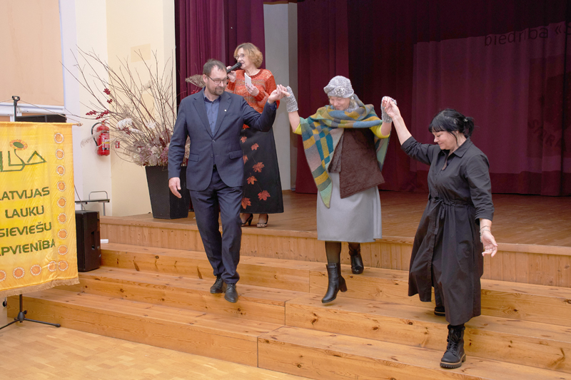 Zemkopības ministrijas Lauksaimniecības un lauku attīstības departamenta direktore Biruta Ingiļāvičute līdz ar sveicieniem no iestādes kolēģiem uzteica lauku sievas par arvien augošo līdzdalību un dāvāja Latvijā darinātas veltes.