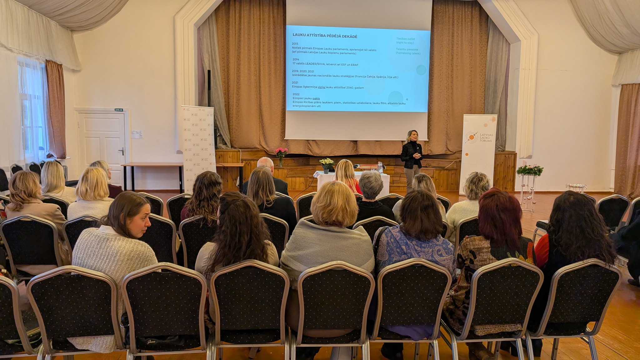 Foruma ietvaros Zemkopības ministrijas un Lauku atbalsta dienesta speciālisti uzstājās ar prezentāciju par LEADER/SVVA pievienoto vērtību, kur apkopoti dati par iepriekšējā gada rezultātiem, piemēram, ka uzrunāti iedzīvotāji 175 pasākumos, no tiem 121 tieši lauku teritorijās, kopumā iesaistot 2 662 dalībniekus, kā arī īstenoti 88 inovatīvi LEADER uzņēmējdarbības projekti, kuros radīti jauni un unikāli produkti un pakalpojumi. Vietējo rīcības grupu darbības ietvaros īstenoti 132 uzņēmējdarbības projekti un 201 sabiedriskā labuma projekts ar ELFLA līdzfinansējumu apmēram 5 miljonu vērtībā, bet SVVA projektiem ar EJZAF līdzfinansējumu programmā piešķirts 2,7 miljonu EUR sabiedriskais finansējums. Tie nav tikai skaitļi – tie ir stāsti par atjaunotām ēkām, jaunām darba vietām, sabiedriski nozīmīgām iniciatīvām un pakalpojumiem, kas kļuvuši par neatņemamu daļu no Latvijas lauku attīstības.