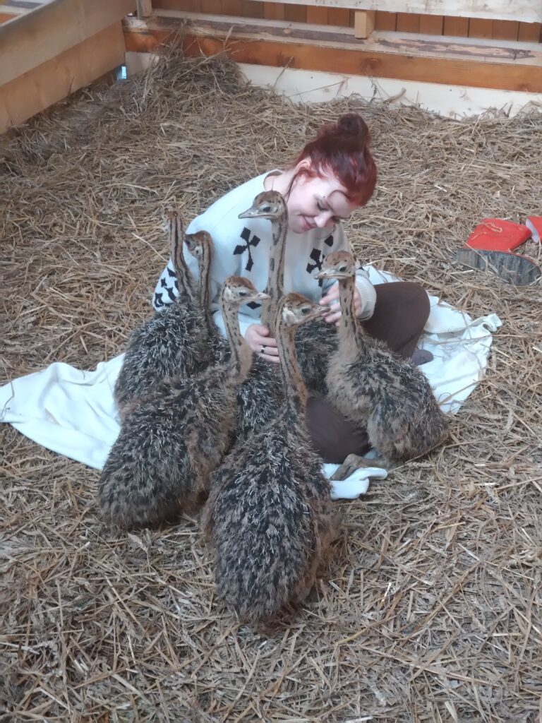Par atbildību viņa runā arī, pamatojoties uz pieredzi ar dāvinātu trīsgadīgu strausu tēviņu. “Strausu tēviņš iepriekš tika turēts nepiemērotos apstākļos, bez saules gaismas un iespējas skriet. Atvedot pie mums, šo informāciju nezinājām. Izlaižot putnu laukā, trešajā dienā viņš nokrita un nespēja piecelties. Skrējējputniem ir jāatīsta kājas, lai viņi spētu pilvērtīgi izaugt. Šajā gadījumā strausam nebija attīstīti muskuļi, un tie no pārslodzes plīsa, kā arī ķermenis pārkarsa, jo iepriekš putns nebija atradies saules gaismā. Mācījām strausam no jauna staigāt, paceļot ar speciāli veidotām štropēm, masējām muskuļus, var teikt, ka veicām fizioterapiju ar mums pieejamām metodēm un zināšanām.”
