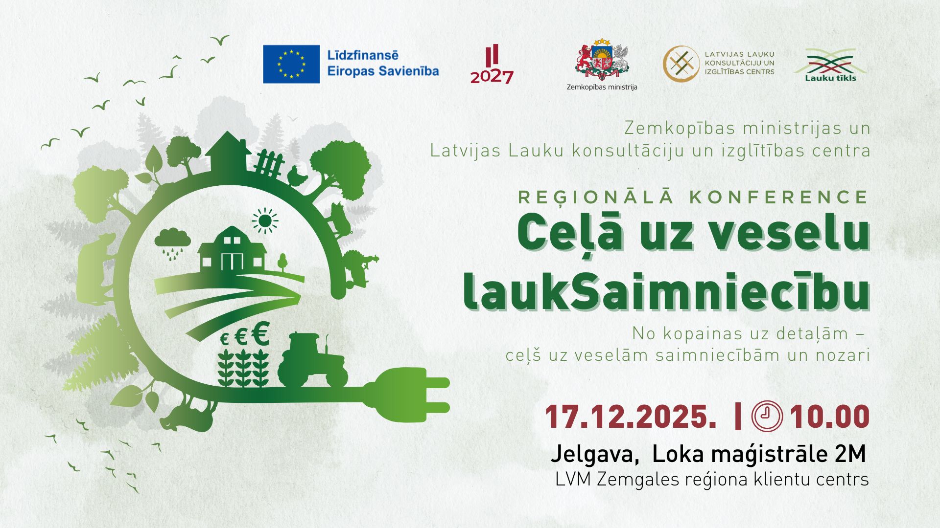 Konference “Ceļš uz veselu laukSaimniecību” notiks 17. decembrī plkst. 10.00–15.30 Jelgavā, AS Latvijas valsts meži Zemgales reģiona klientu centrā.