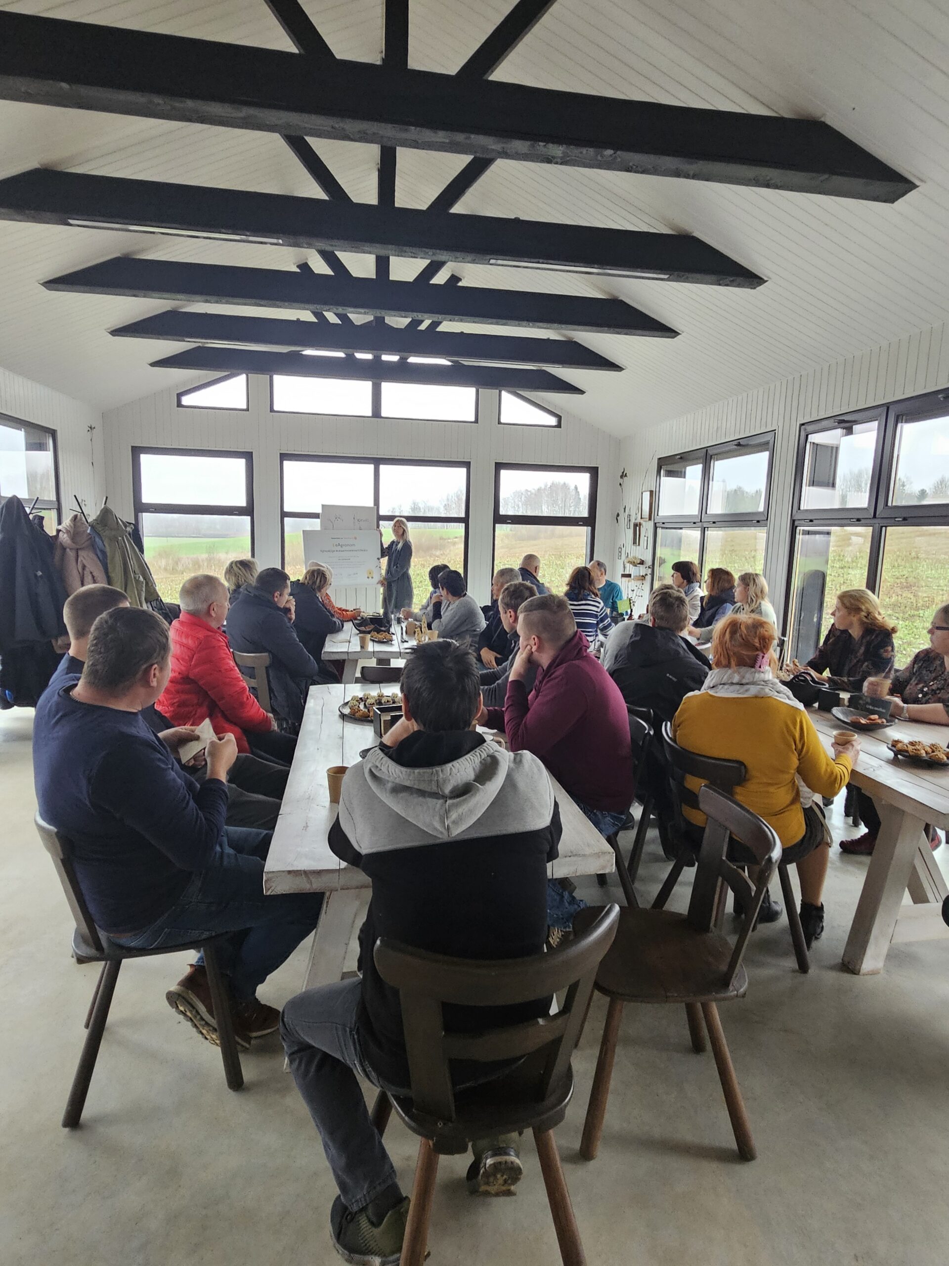 Dalībniekiem bija iespēja nodegustēt saimniecības piedāvātos produktus, un ikviens bija patīkami pārsteigts, ka no griķiem iespējams pagatavot tik dažādus ēdienus. Degustējām griķu maizi ar zaļo griķu pesto un diedzētiem griķiem, griķu asuškas un griķu mafinus. Ikvienam par pārsteigumu griķis ir ļoti unikāls produkts, kuru ikdienā iespējams par maz novērtējam.