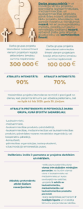 Pasākumā Nr. 16 “Atbalsts Eiropas Inovāciju partnerības darba grupu projektu īstenošanai” ir nozares un saimniecības līmenis, no kā izejot tiek piešķirts finansējuma apmērs un atbalsta intensitāte. Plašāka informācija infografikā.