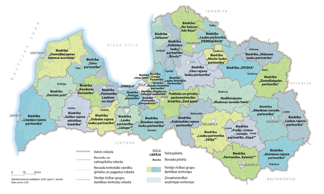 Latvijas teritorijā patlaban 33 vietējās rīcības grupas (vietējo pašvaldību, nevalstisko organizāciju, uzņēmēju un aktīvu lauku iedzīvotāju partnerība, pārstāvot iedzīvotāju intereses un rūpējoties par teritorijas attīstības jautājumiem vietējā līmenī) ir sagatavojušas savai darbības teritorijai SVVA stratēģiju, kurā noteikti mērķi un rīcības atbalsta saņemšanai plānošanās periodā 2023.–2027. gadam.