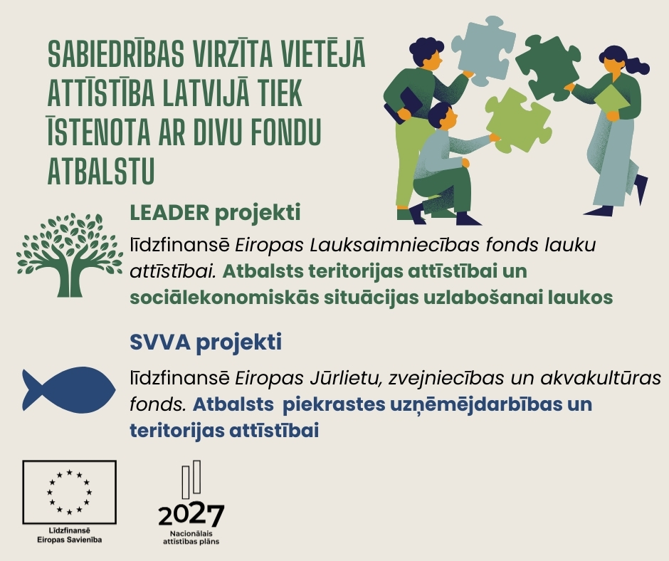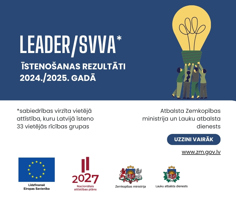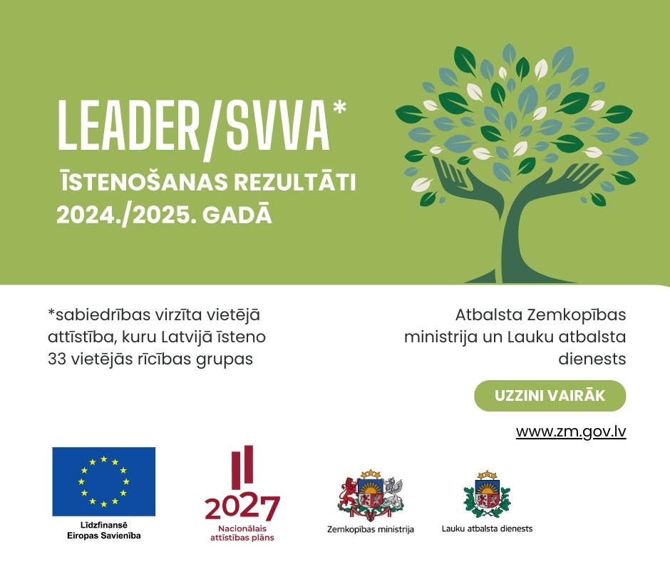 LEADER/SVVA – instruments lauku kopienu ilgtspējīgām vietējām iniciatīvām, attīstot un uzlabojot ekonomisko un sociālo situāciju laukos, veidojot ērtu vidi dzīvošanai, uzņēmējdarbībai un lauku teritoriju attīstībai.