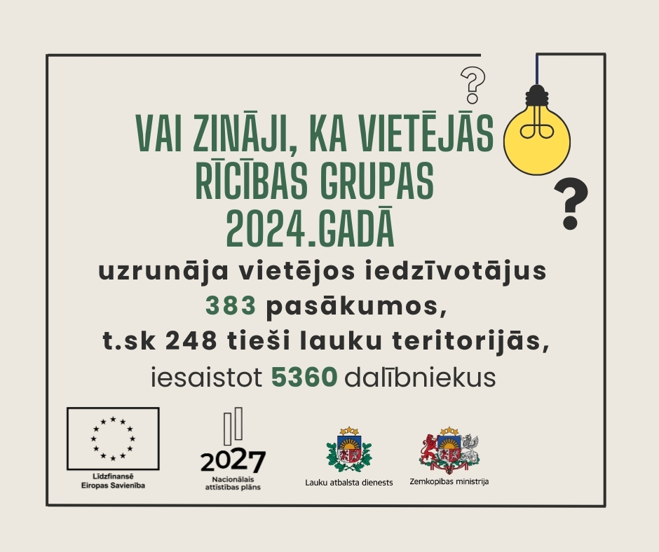 Ja jums ir kāda ideja vai vēlme iesaistīties vietējās teritorijas attīstībā – atrodi savas teritorijas vietējo rīcības grupu un sazinies ar to!