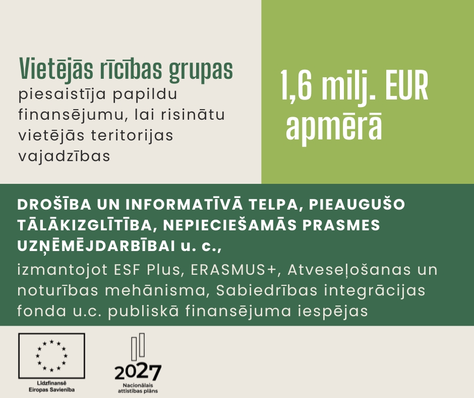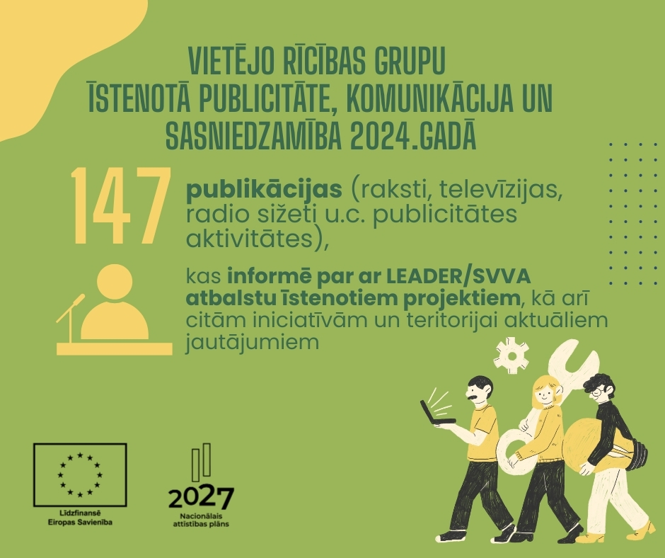 2024. gada sākumā vietējās rīcības grupas uzsāk jaunās SVVA stratēģijas īstenošanu, organizējot projektu iesniegumu pieņemšanas konkursus un piešķirot finansējumu projektiem, kas ir atbilstoši stratēģijai, ietverot aktivitāti:
