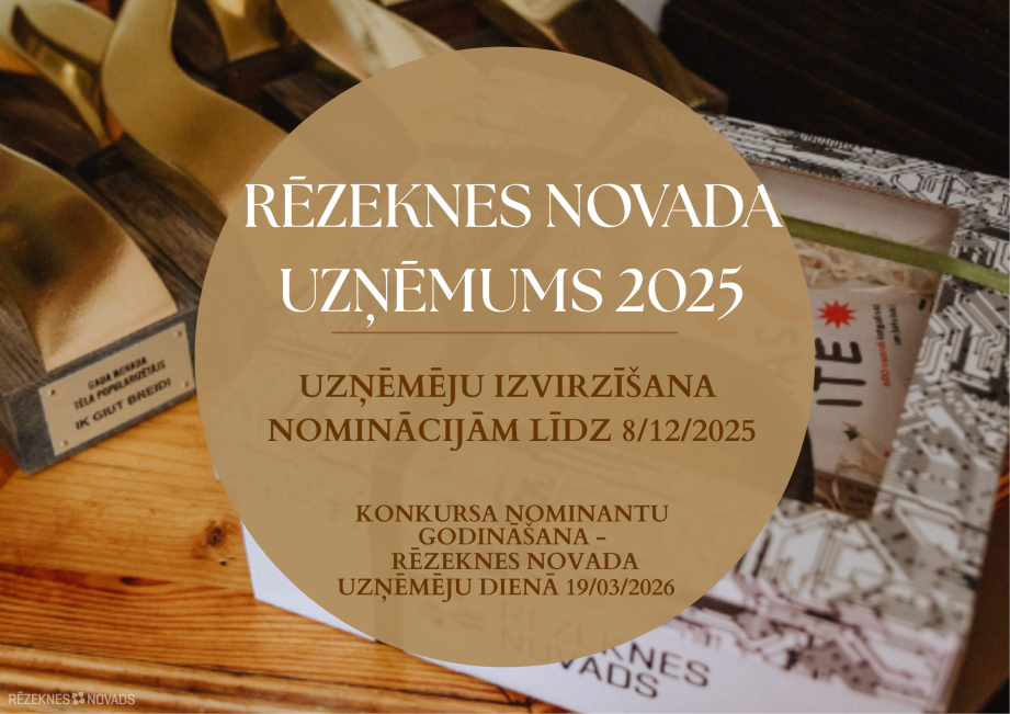 Izsludināta pretendentu pieteikšana konkursam “Rēzeknes novada uzņēmums 2025” Klātiene Nozare/joma: Biznesa attīstība Veids: Cits Norises laiks: 06/11/2025 08/12/2025 Norises vieta: Latgale Atbrīvošanas aleja 95a, Rēzekne