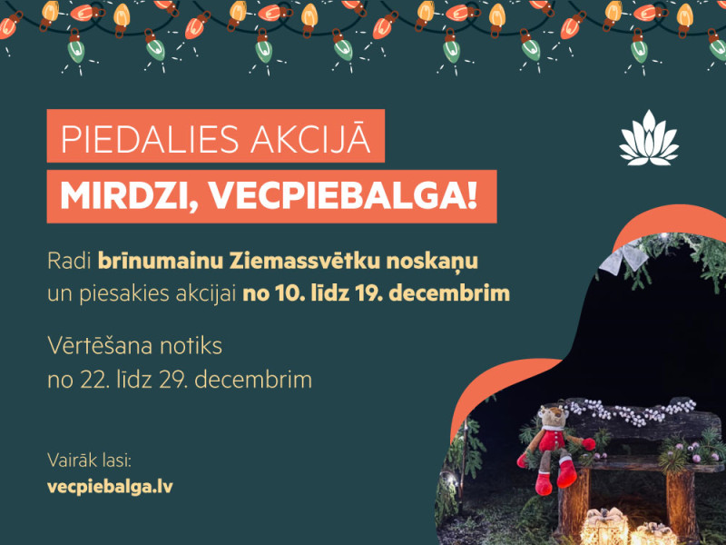 Kopā veidosim gaišu un priecīgu Ziemassvētku gaidīšanas laiku un tiksimies akcijas noslēguma pasākumā 9. janvārī Vecpiebalgas Kultūras namā!