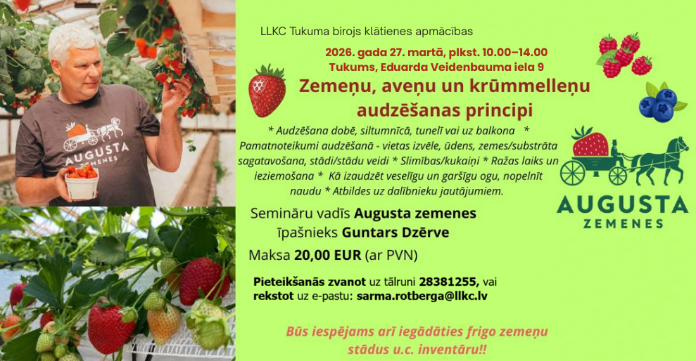 Apmācības “Zemeņu, aveņu un krūmmelleņu audzēšanas principi”