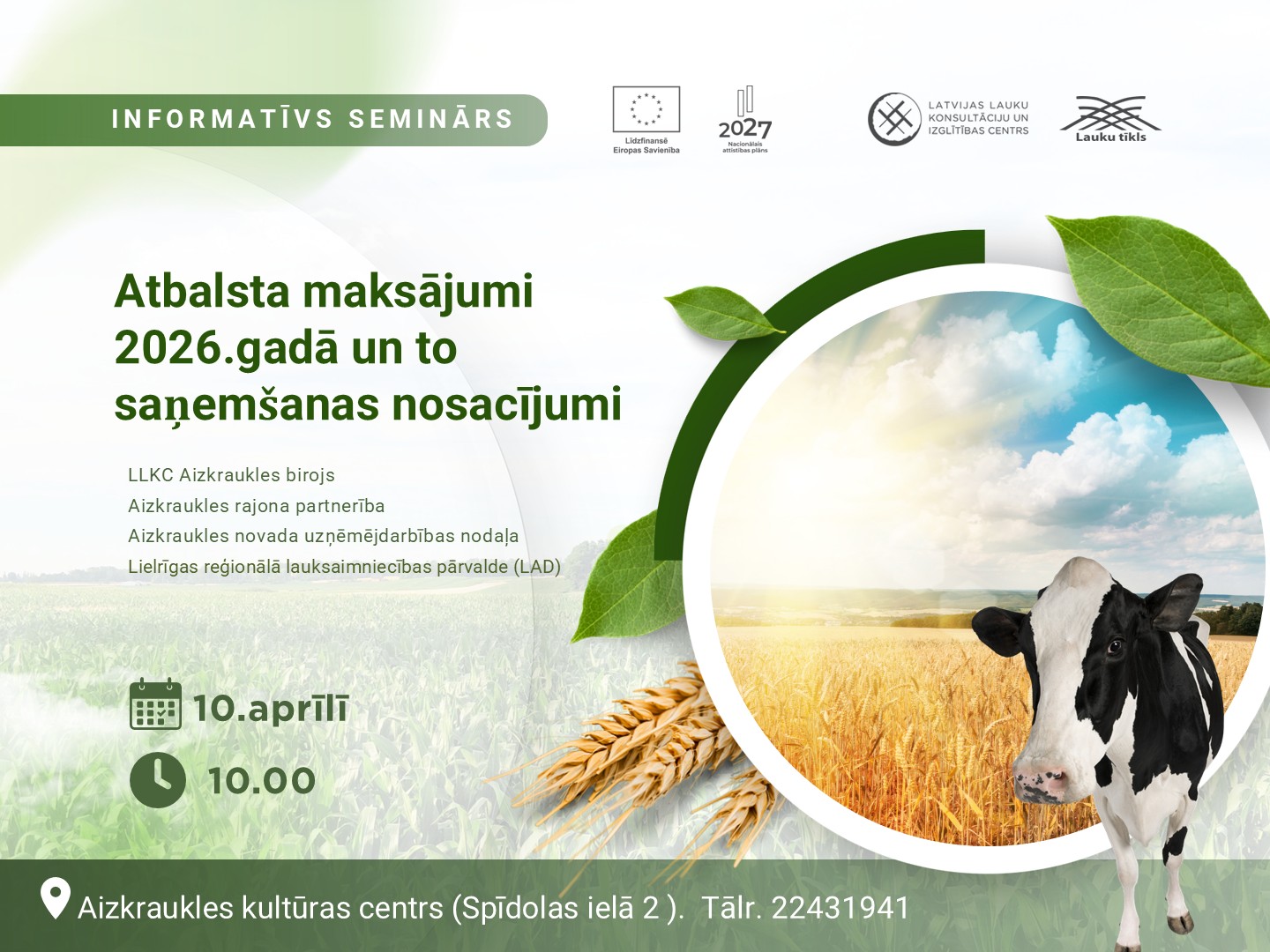 Piedalīsies LLKC un Lauku atbalsta dienesta speciālisti, kā arī Aizkraukles novada un LEADER pārstāvji.