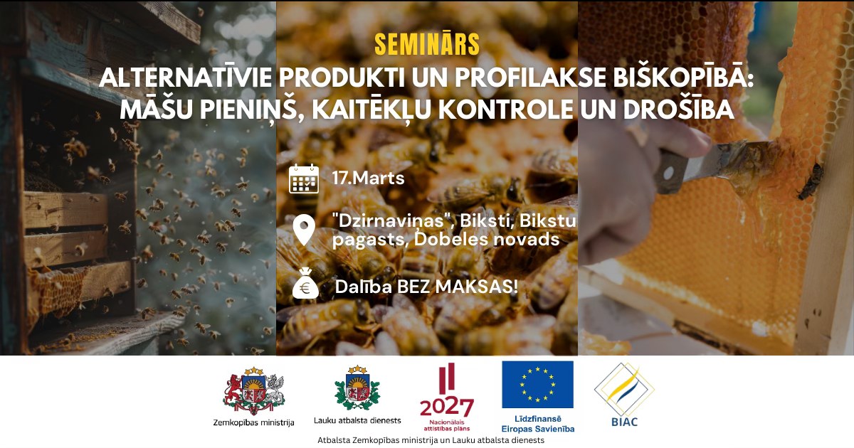 Semināra mērķis ir paplašināt biškopju zināšanas par alternatīviem bišu produktiem, to ieguvi un izmantošanu, kā arī aktualizēt bišu dravu aizsardzības un drošības jautājumus, lai veicinātu ilgtspējīgu un drošu biškopības praksi.