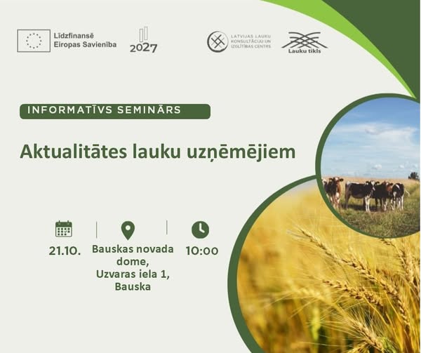 21. oktobrī LLKC Bauskas konsultāciju birojs rīko informatīvu semināru par aktualitātēm lauku uzņēmējiem.