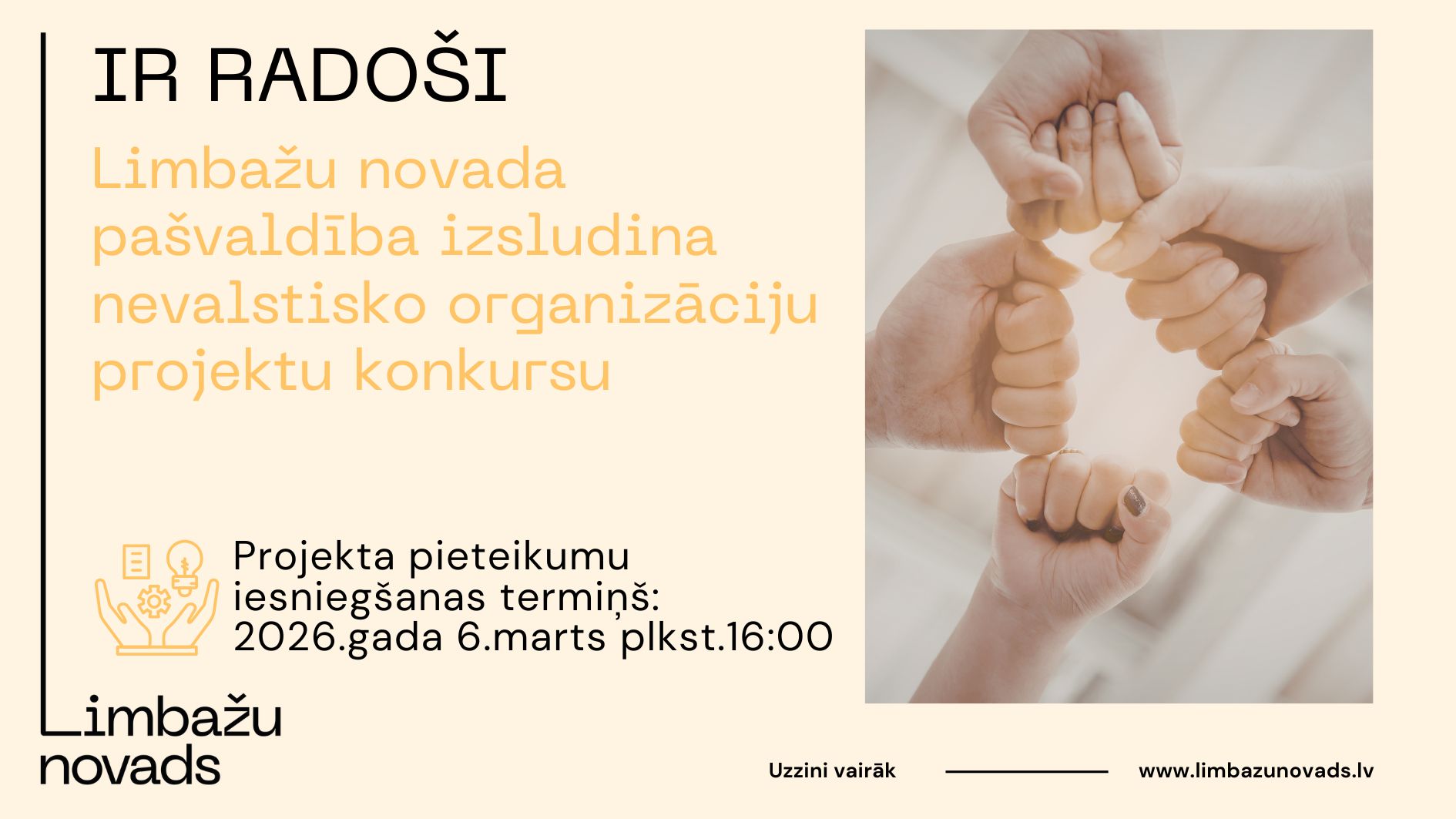 Projektu konkursa mērķis ir atbalstīt sabiedriski nozīmīgu programmu, projektu un pasākumu īstenošanu Limbažu novadā.