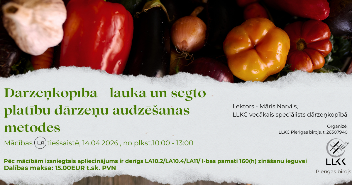 Pieaugot interesei par pašu audzēto dārzeņu praksi savā saimniecībā, mazdārziņā aicinām uz mācībām par dārzeņu audzēšanas iespējām uz lauka jeb segtajās platībās.