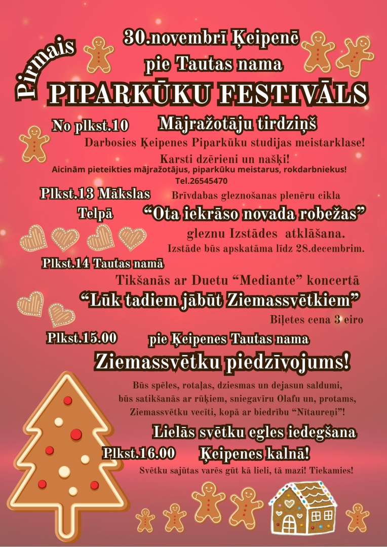 30. novembrī pie Ķeipenes Tautas nama notiks Pirmais Piparkūku festivāls, kas priecēs ar svētku noskaņu, gardumiem un radošām aktivitātēm.