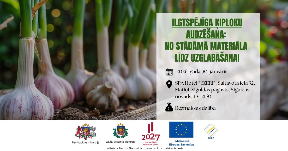 Projekta “Informatīvie pasākumi dažādās lauksaimniecības nozarēs 2025 – 2026” ietvaros, Biedrība “Baltijas izglītības un attīstības centrs” organizē informatīvu semināru ķiploku audzētājiem.