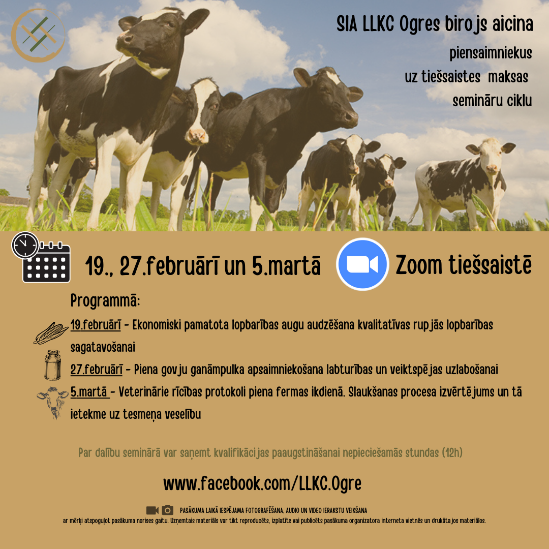 - 19.februārī – Ekonomiski pamatota lopbarības augu audzēšana kvalitatīvas rupjās lopbarības sagatavošanai (4h)