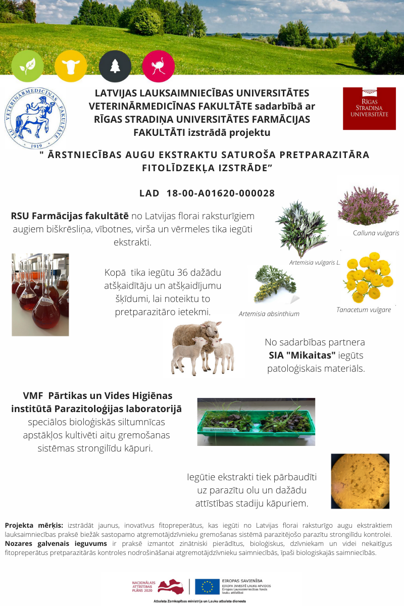 Izstrādāt jaunus, inovatīvus fitopreperātus, kas iegūti no Latvijas florai raksturīgo augu ekstraktiem lauksaimniecības praksē biežāk sastopamo atgremotājdzīvnieku gremošanas sistēmā parazitējošo Trichostrongylidae dzimtas parazītu kontrolei.